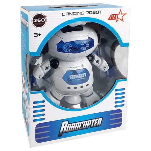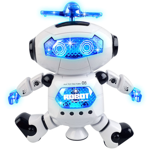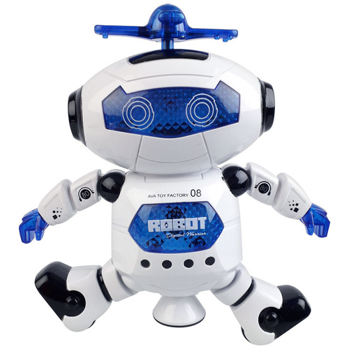 یکی از مهمترین ویژگیهای این اسباببازی، رقص نور زیبا و پرقدرت آن است. روی سر ربات یک پره هلیکوپتری قرار دارد که هنگام چرخش، جلوه نوری بسیار دیدنی ایجاد میکند. علاوهبر آن، صورت، سینه، دستها و پره بالایی همگی مجهز به چراغهای LED رنگی هستند تا تجربه بازی شادتر و جذابتر شود. ربات همراه با پخش آهنگهای کودکانه و ریتمیک کار میکند و محیط را برای کودک پر از انرژی و هیجان میسازد.